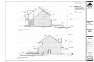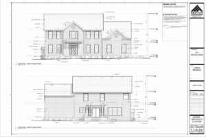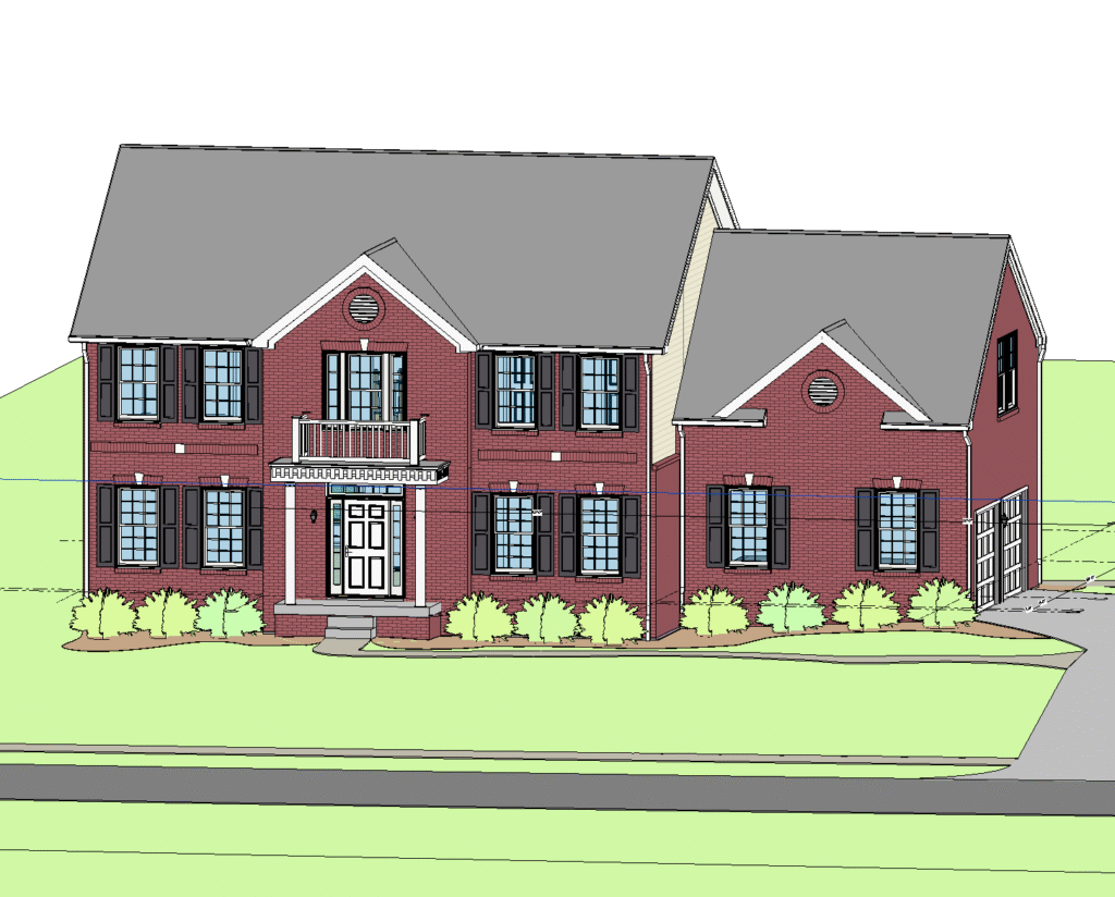 The white bloosom 2-story residential house template features a traditional architecture style, 4-Bedrooms, 3 levels, and a 2 car garage.